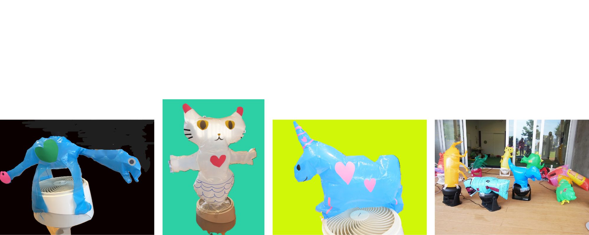 現代美術作家の塩川 岳さんを講師に迎え、「空想の動物」をカラービニールでつくります。ぬいぐるみをつくるような感覚で「空想の動物」を完成させ、作品にサーキュレーターで空気を入れると動物が起き上がります!みんなのつくった動物たちが大集合!
