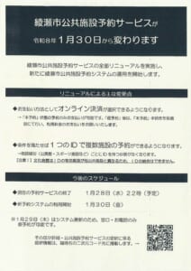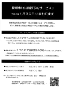2026年1月5日 綾瀬市公共施設予約サービス更新のお知らせ